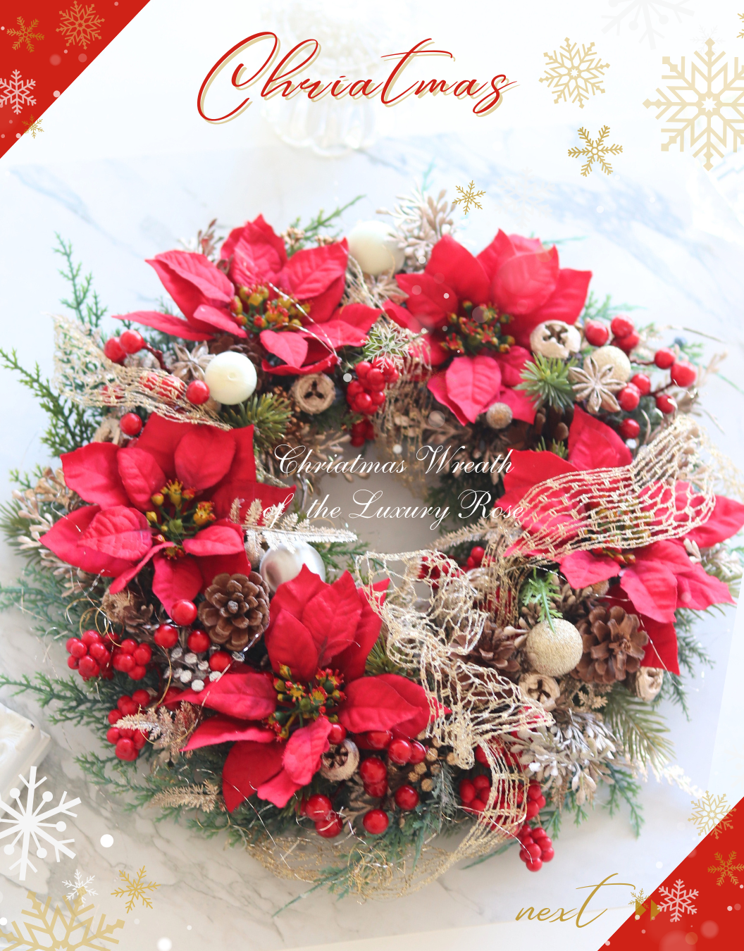 tytle:「幸運の赤いポインセチアリース」